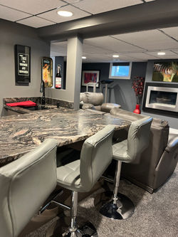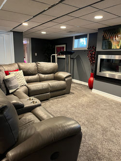 Enjoy the solitude of our Grey Suite, which offers the added features of a private living space. The suite includes a kitchen, complete with granite countertops, a full-size refrigerator, range/oven, and microwave, along with a sink and a wet bar. Pots, pans, a microwave, dishes, and towels are also available, along with a coffee pot and Kuerig pods. The living room showcases a modern feel with a large, 70-inch flat screen TV, reclining leather sectional, and gas fireplace. When it's time to turn in, you'll quickly drift to sleep in the grey bedroom's comfy queen-size bed with lush linens and pillows. This room also includes dual nightstands with lamps and a 27-inch flat screen television. The loveseat in the living room opens to a queen-size bed for additional sleep space. Included with the Grey Suite is a private bathroom with a bathtub and shower, and a lighted 2-sided magnifying make-up mirror. Two bathrobes, a hair dryer, and a full-length mirror are available for use. The apartment has a treadmill available, and also has a toy room with a 25-inch TV (for movies only). This space can be used as an additional sleep space. A queen-size air mattress is available for an additional charge. Guests receive a continental breakfast each morning.